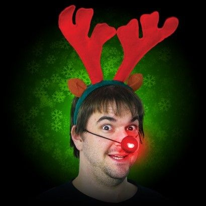 Nice big reindeer antlers for your head. A nice Christmas tiara / her band along to steal the show. This set is also a red nose that glows.