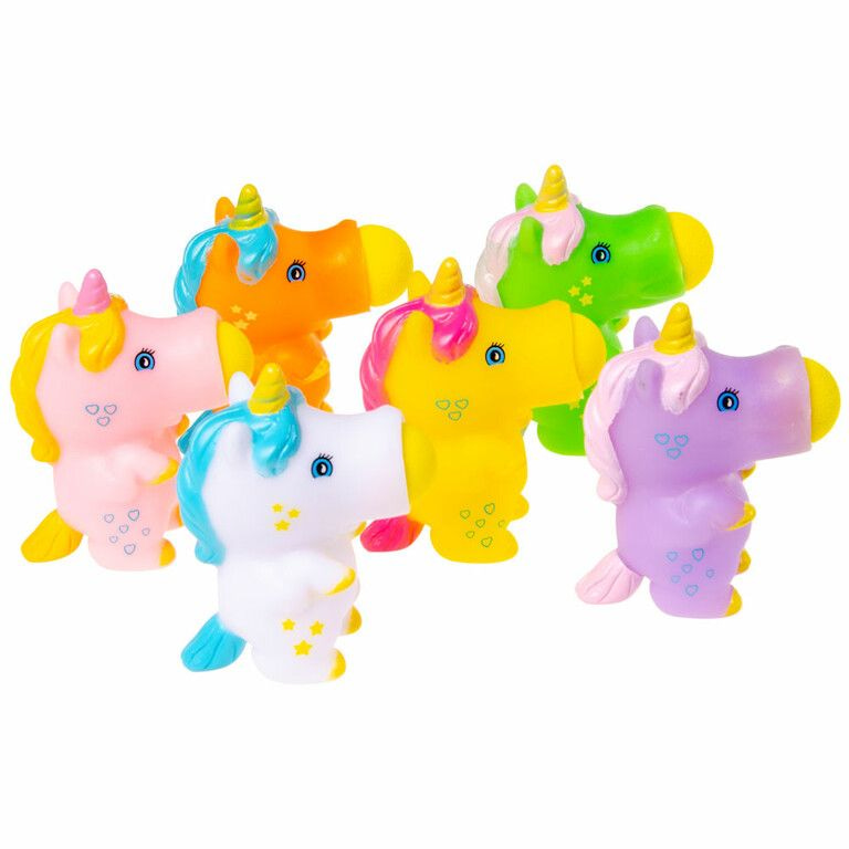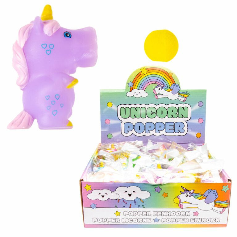 Very funny this Unicorn / Unicorn ball shooter. Put the ball in the mouth of this unicorn, then squeeze the unicorn and the ball will shoot away. Comes in Mix colors in a nice display.