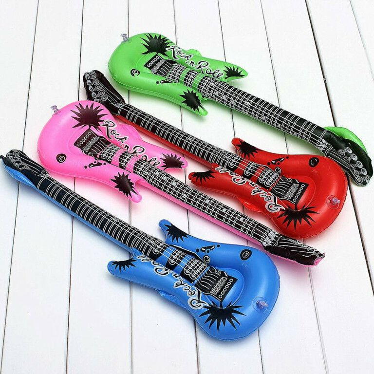 Nice inflatable guitars of 54 cm. High. Delivered in Mix colors.