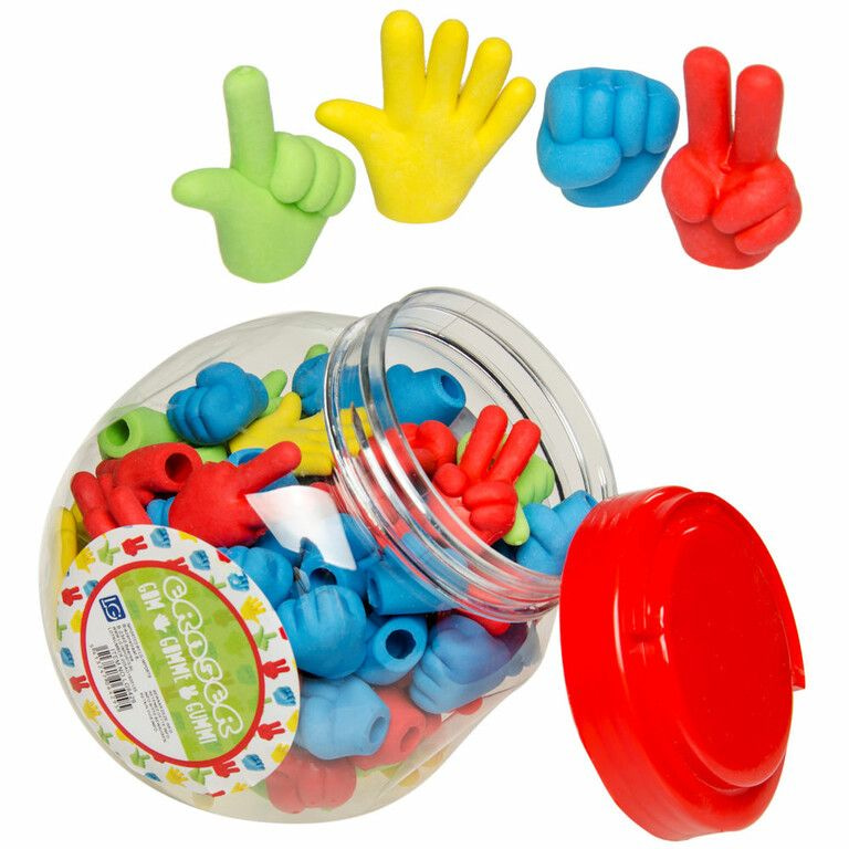 Eraser in the shape of a hand. Comes in MIX colors in a Pot.