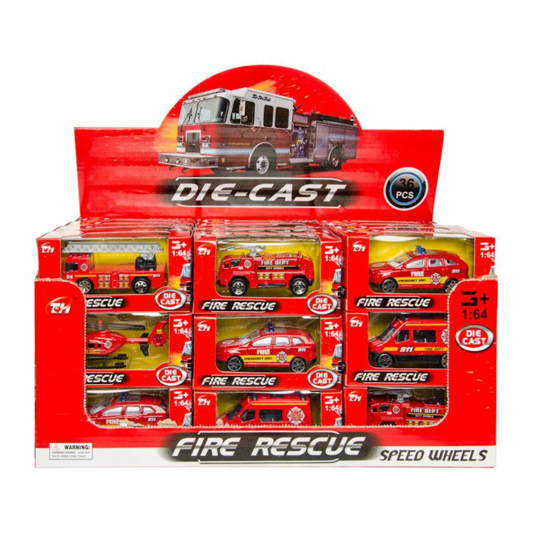 MIX METAL FIRE BRIGADE VEHICLES IN DISPLAY (36pcs)