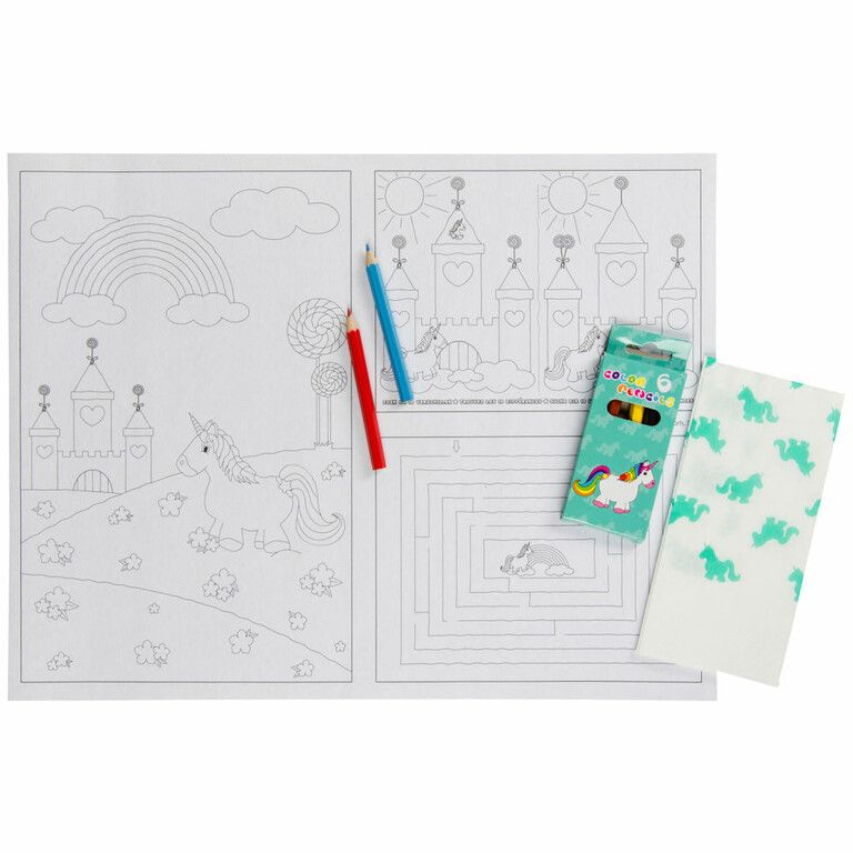 100x Coloring page, model Unicorn (Can also be used as a placemat)