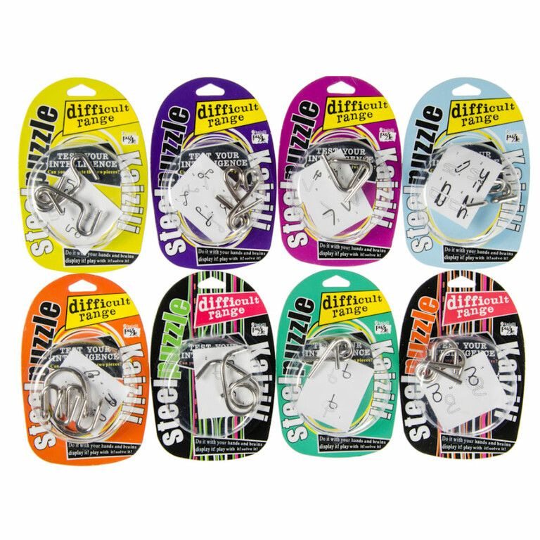 Very nice metal IQ puzzles, individually packed on a blister card. Comes in different metal IQ puzzles of different difficulty.