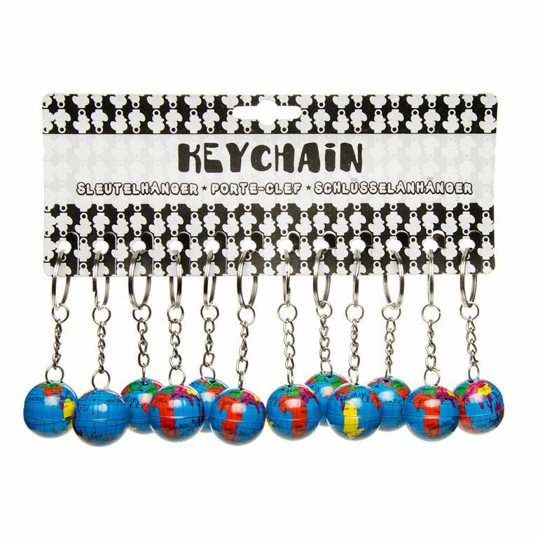 Metal globe keychains.