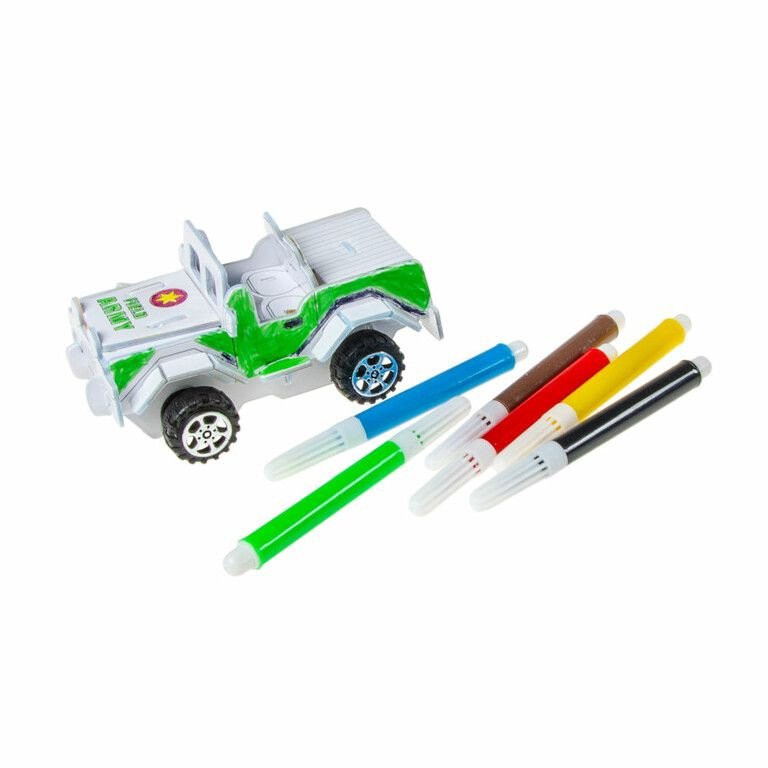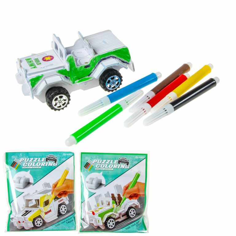 Fun 3D Car puzzles with friction motor. Very nice 3D puzzle, first assemble this 3D car and equip it with a friction motor. Once you put it together. Can you color it. (Includes 6 felt-tip pens). Comes in mixed types.