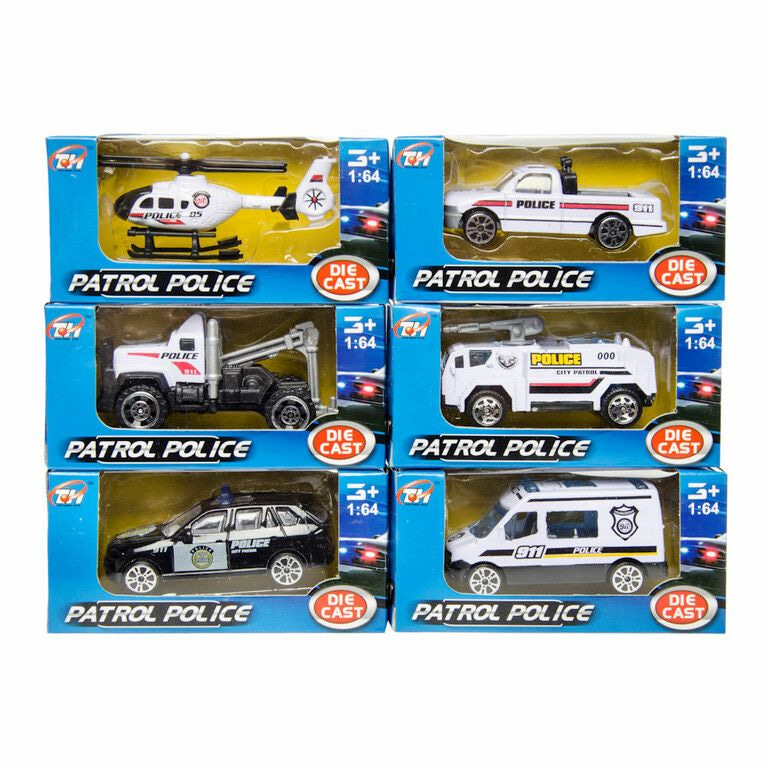 Beautiful Display with Mix types of police vehicles. Many different kinds. Individually packed in a box of: 11 x 5 x 5 Cm