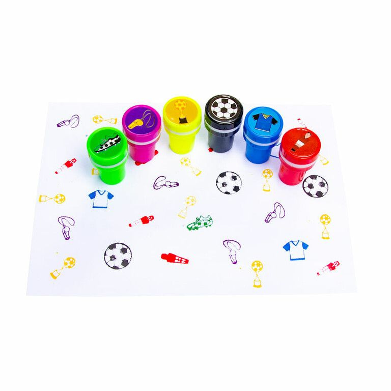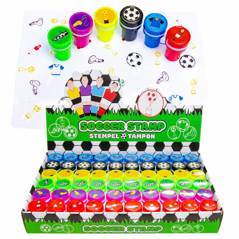 Tough soccer players stamps, are supplied in mixed types in a display.