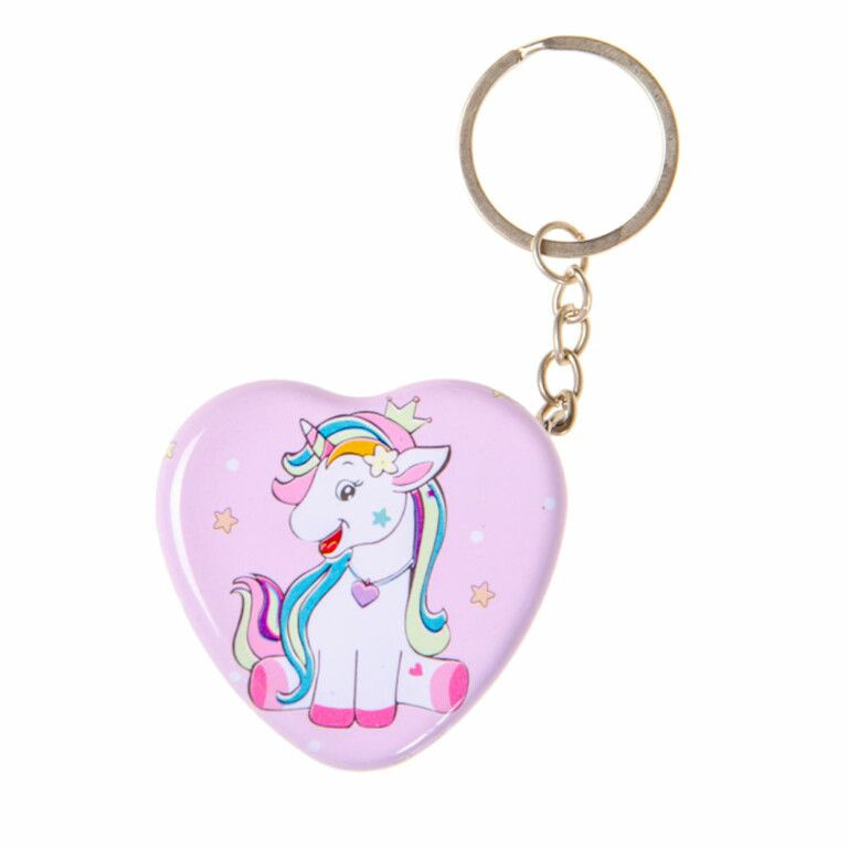 Leuke sleutelhangers, voorzien van een Harten vorm Unicorn / Eenhoorn metalen opbergdoosje. Word geleverd in Mix kleuren.