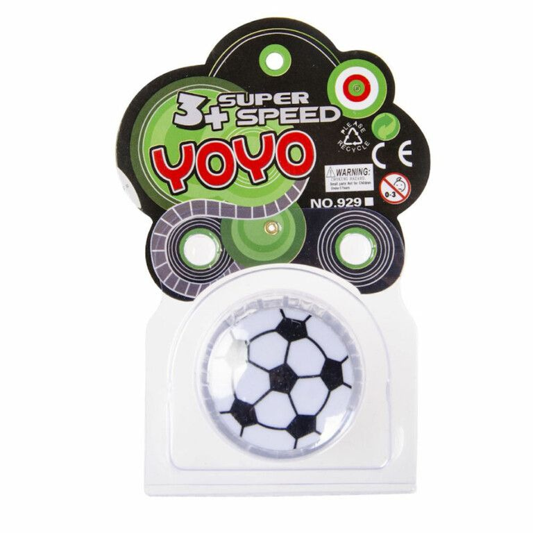 Prachtige Voetbal Jo Jo op kaart. Wordt in Mix kleuren geleverd.