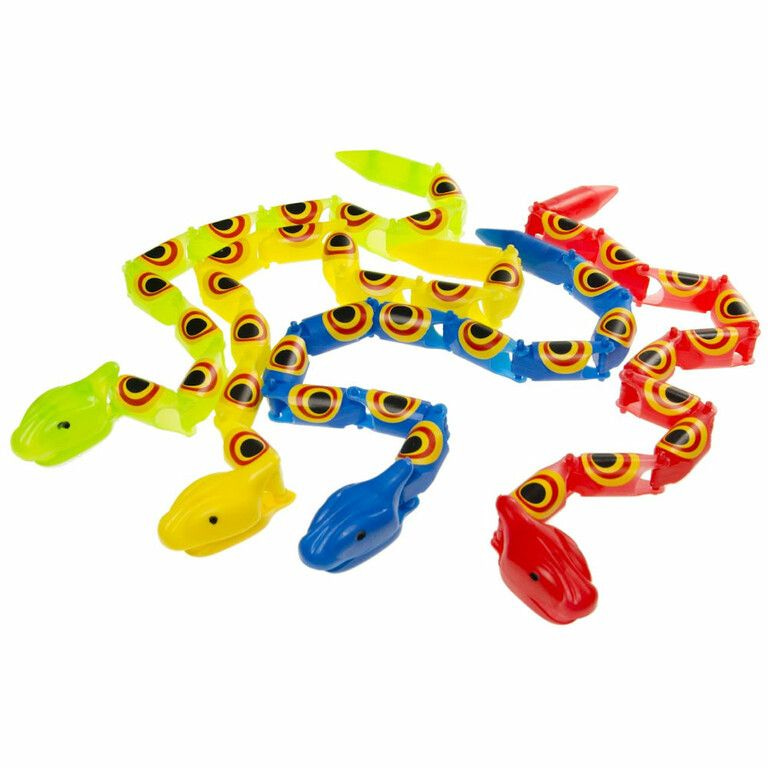 Enge flexibeleslangen in verschillende kleurtjes. De slang is zeer flexibel... pak hem bij het einde van zijn staart en slinger hem alle kanten op. Natuurlijk ook leuk om elkaar te laten schikken. Lengte van de slang. 35 Cm. Verpakt in een mooie Display.
