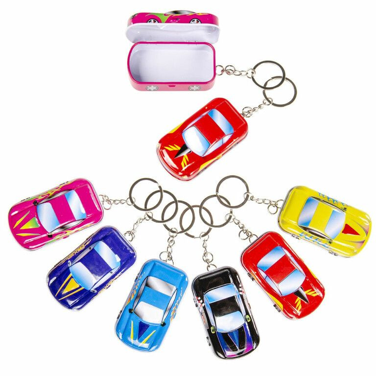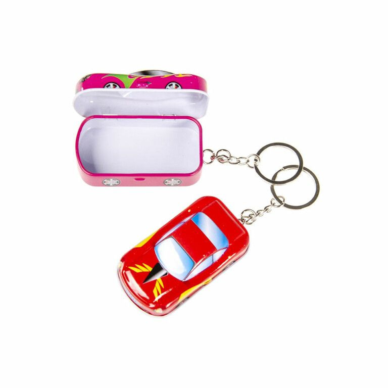 Leuke sleutelhangers, voorzien van een gekleurde Auto metalen opbergdoosje. Word geleverd in Mix kleuren.
