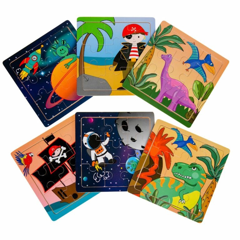 Prachtige Houten MIX Jongens puzzels, elke puzzel bestaat uit 9 puzzel stukjes. En is gemaakt van Hout. Elke Display bevat Mix soorten puzzels van de volgende thema's: Piraat, Dinosaurus & Space / Ruimtevaart.