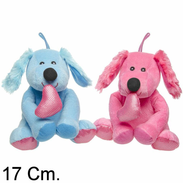 PLUCHE HOND MET HART - 17 CM - MIX KLEUREN (12st.)