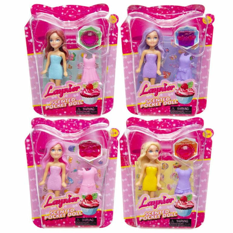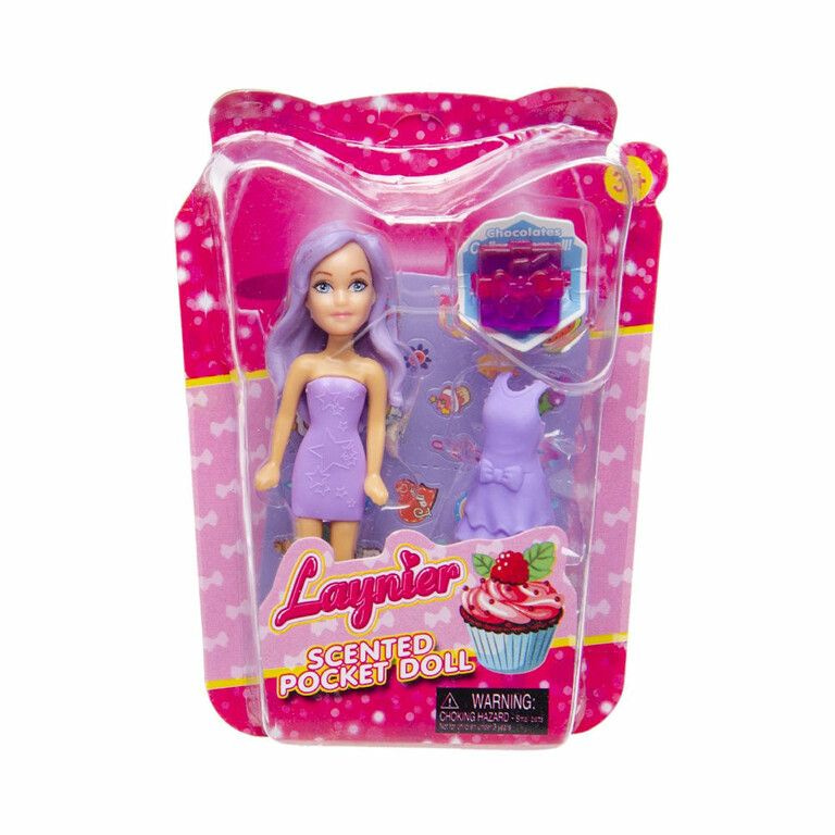Leuke kleine Pocket Doll / Popje met accessoires. Afmetingen kaart van de pop: 9 x 13 x 2 Cm. Wordt geleverd in een display.