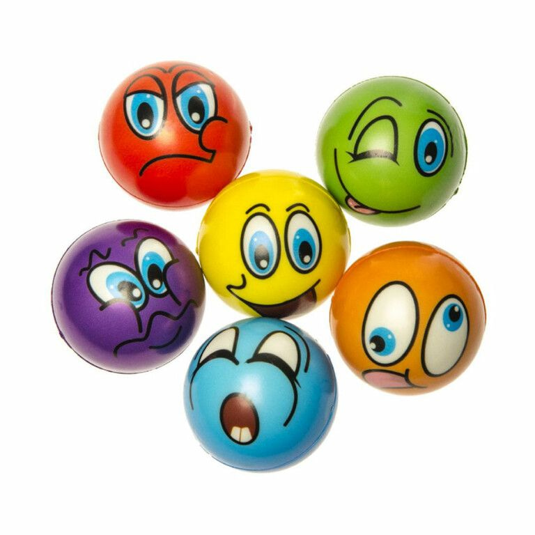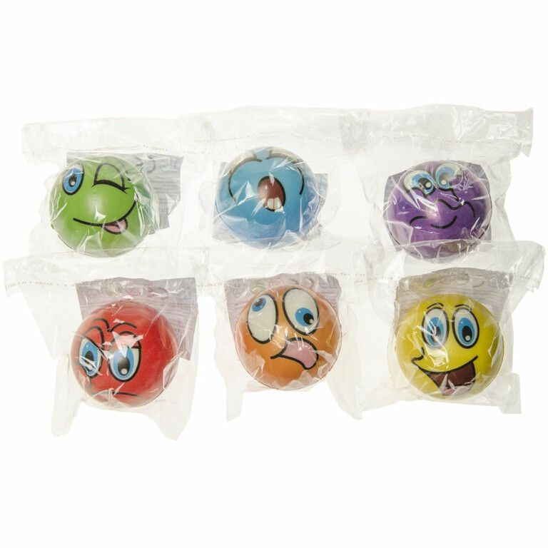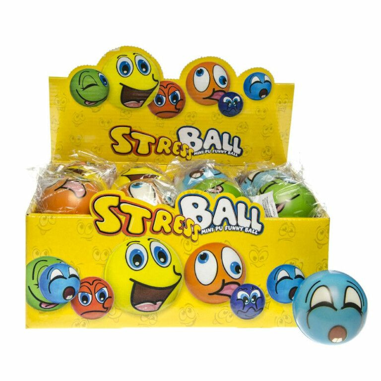 Vrolijke Smiley stressballen, diameter: 6 Cm. Verpakt in Mix kleuren in een display.