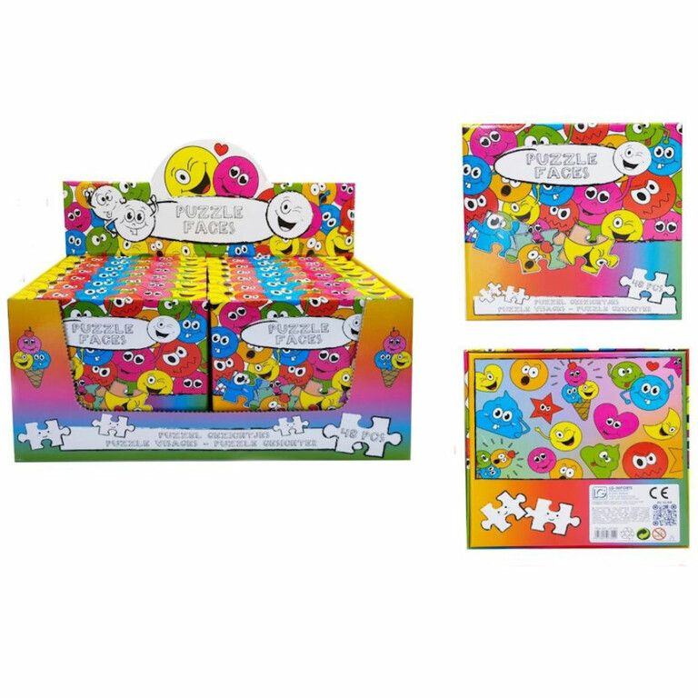 Leuke Smiley Puzzel, bestaande uit 48 Puzzelstukjes. Wordt geleverd in een prachtige display. Afmetingen van 1 puzzel in de doos: 17 x 17 x 3 Cm