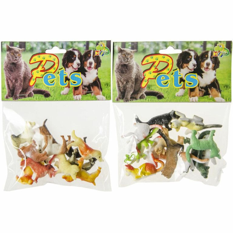 Leuke verpakking met daarin 12 Stuks Hondne & Katten Speelfiguur Dieren. Prijs is per verpakking van 12 speeldieren. Afmetingen van 1 verpakking: 14 x 18 x 2 Cm.