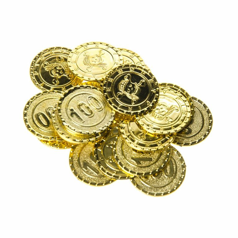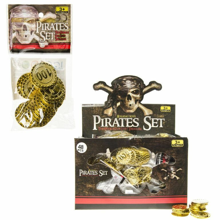 Zakjes met daarin 20 STUKS Piraten Geld munten. Per 48 Zakjes verpakt in een Display. Afm zakje: 8 x 15 x 2 Cm.