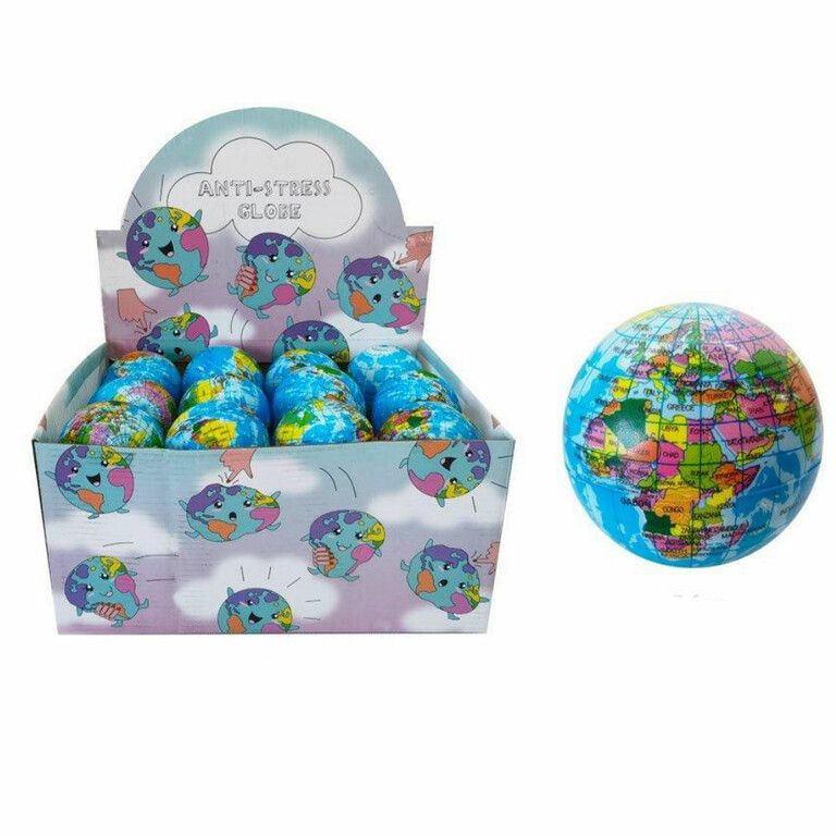 Mooie Wereldbol stressballen. Afmeting stressbal: 8 x 8 x 8 Cm. Wordt geleverd in een Display.