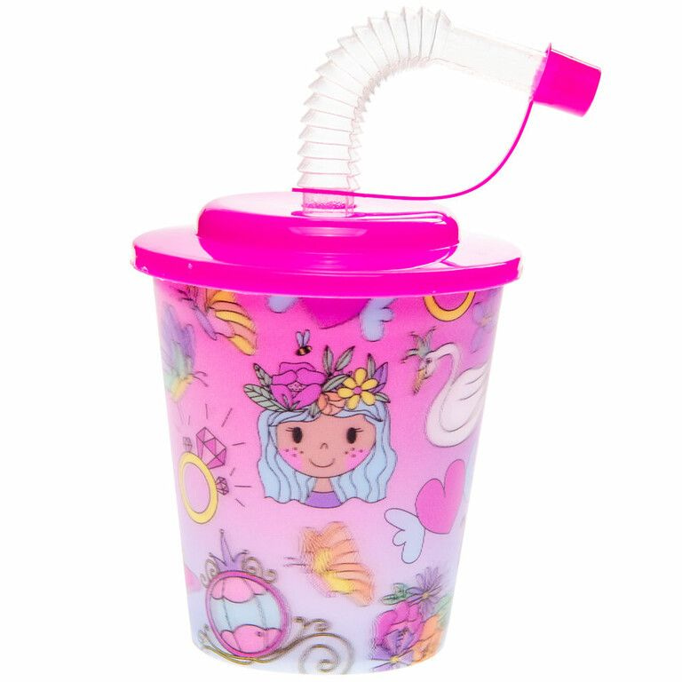 Handige Drinkbekers / IJsbekers, voorzien van Deksel en Rietje. Model: PRINSES. Inhoud: 250ML.
