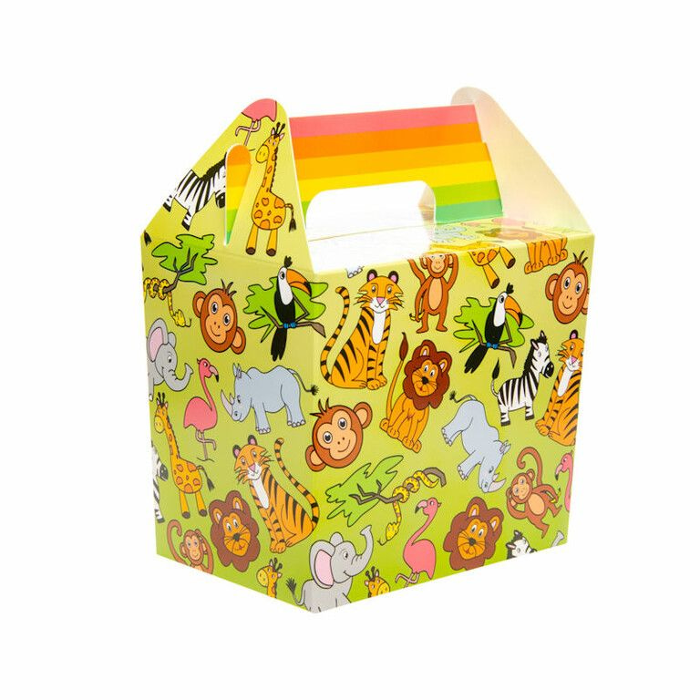 Leuke Menubox / Traktatie / Uitdeeldoosjes model: Jungle dieren. Afmetingen: 14 x 10 x 17 Cm.