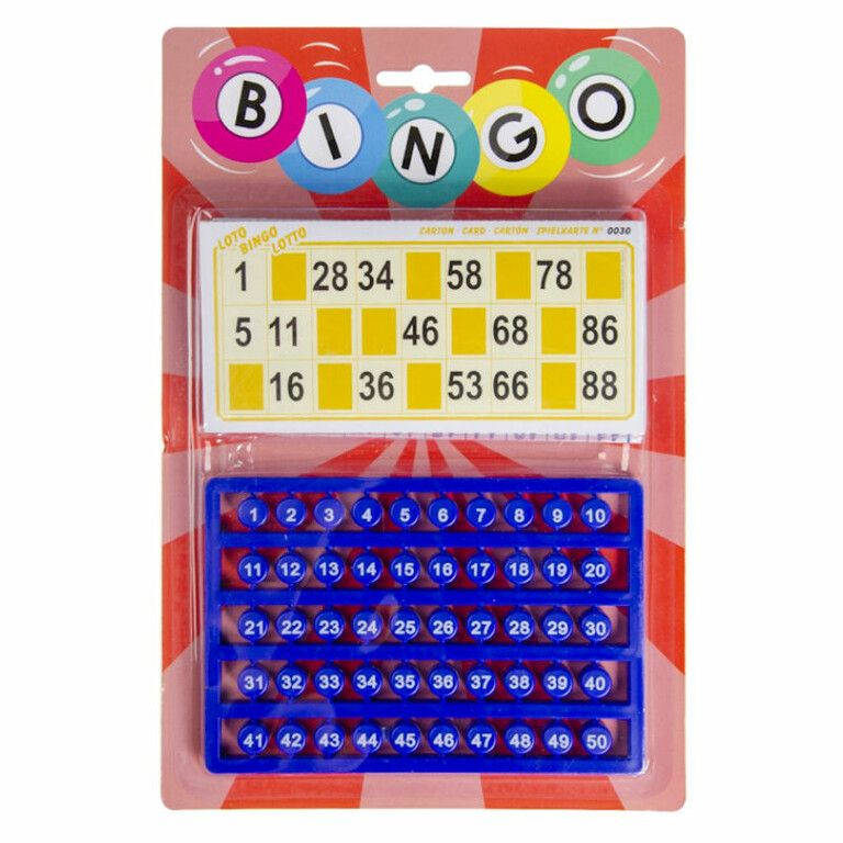 Leuke Bingo Speelset op Kaart. Bestaande uit Bingo bord en Bingo Speelkaarten. Verpakt op een mooie kaart van: 20 x 30.5 x 2 Cm.