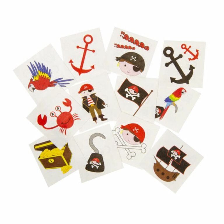 FUN TATTOO’S - MODEL: PIRAAT, Elk pakje 12x Tattoo’s (48st.)