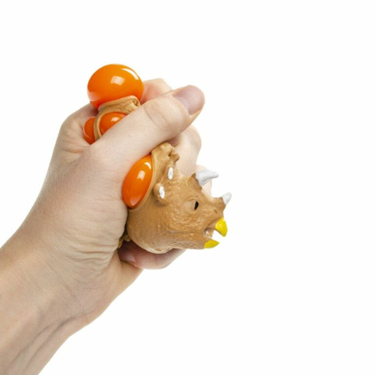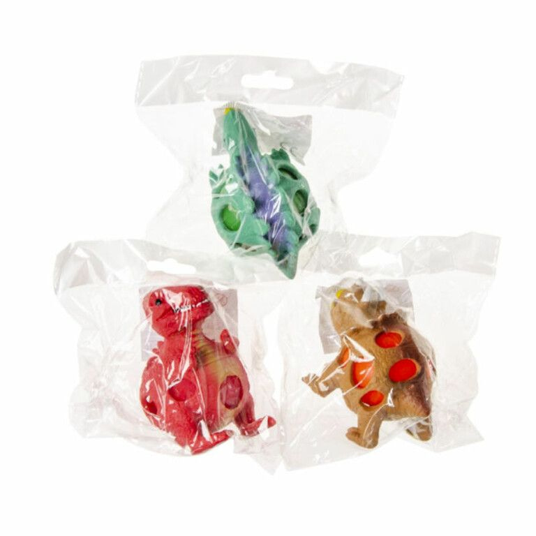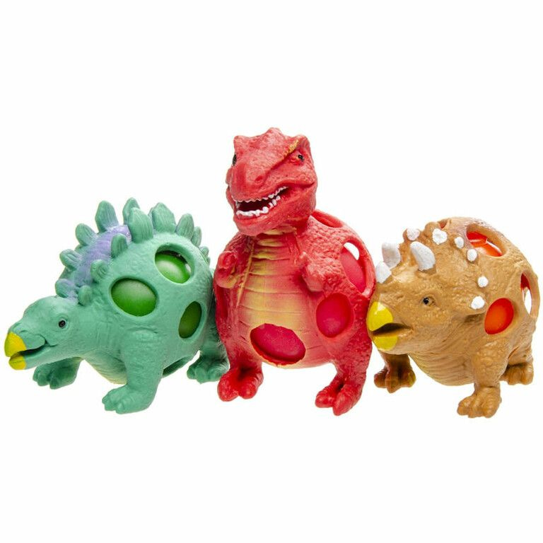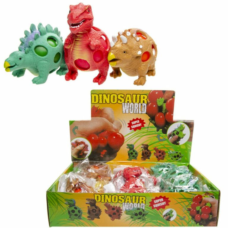 Leuke stoere Squishy mesh bal in de vorm van een Dinosaurus, waar je lekker in kunt knijpen. Wordt in Mix soorten Dinosaurussen geleverd in een Display.