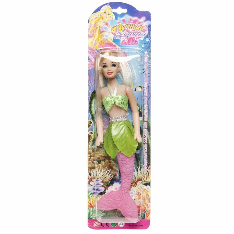 Beautiful large mermaid doll on card. Dimensions: 10 x 38 x 3.5 cm.