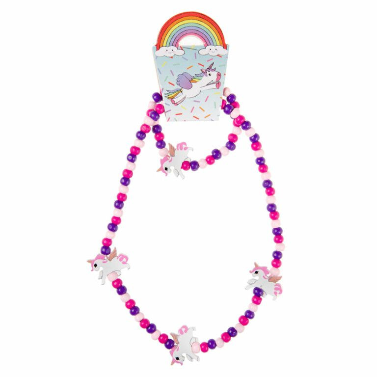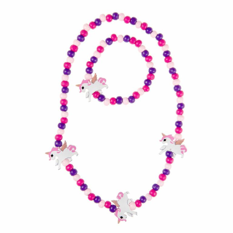 Leuke Houten Kinder Unicorn / Eenhoorn Halsketting + Armband Set.