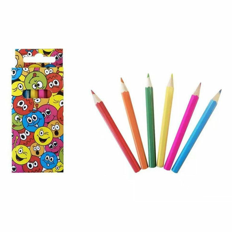 6-Delige Kleur Potloden set , model: Smiley. Verpakt in een kleurrijk doosje.