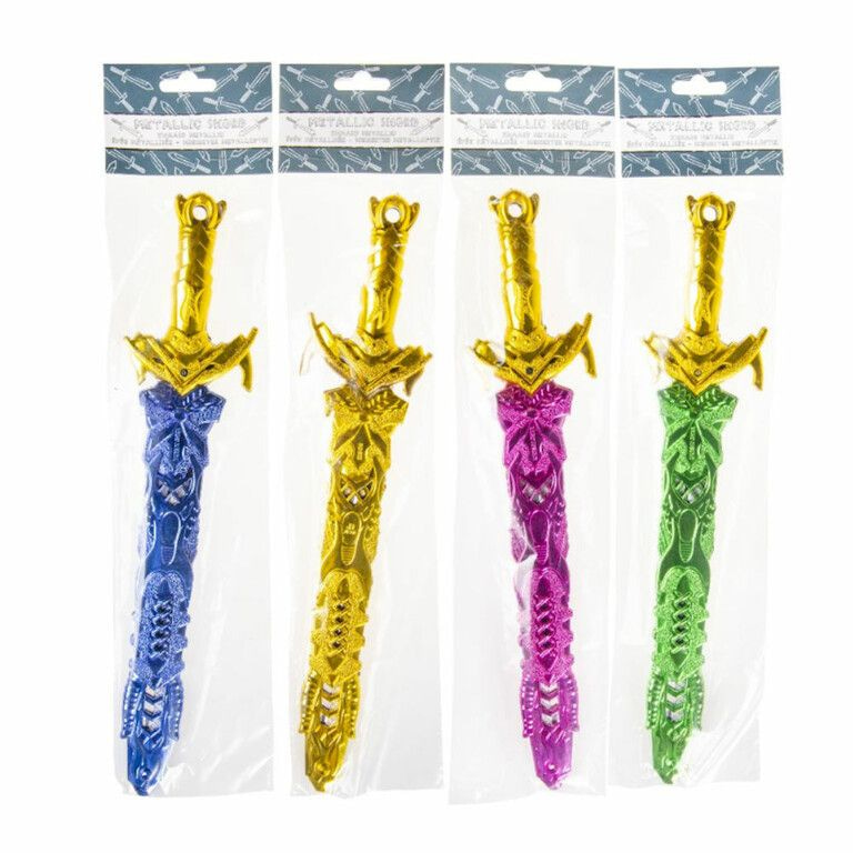 Metallic gekleurde plastic zwaarden, 33 Cm. Lang ! wordt in mix kleuren geleverd.