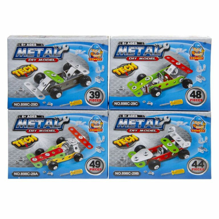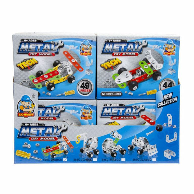 Bouw je eigen metalen raceauto, wordt in 4 Mix soorten voertuigen geleverd in een mooie display.