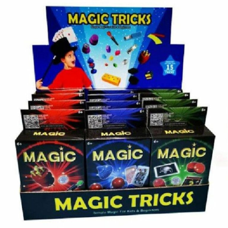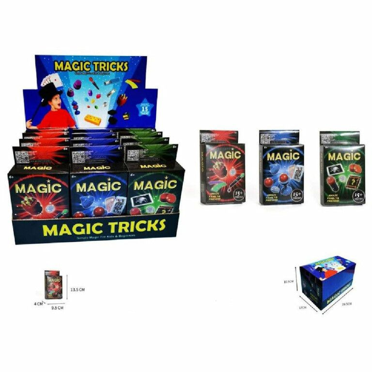 Magic Tricks: Each package contains 15 different magic tricks. Packaged in a beautiful display case. Dimensions of each package: 9.5 x 16 x 4 cm.