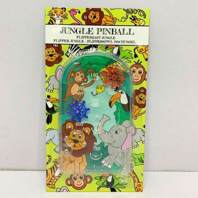 Groot flipperspel model: Jungle Dieren, verpakt op een mooie kaart.