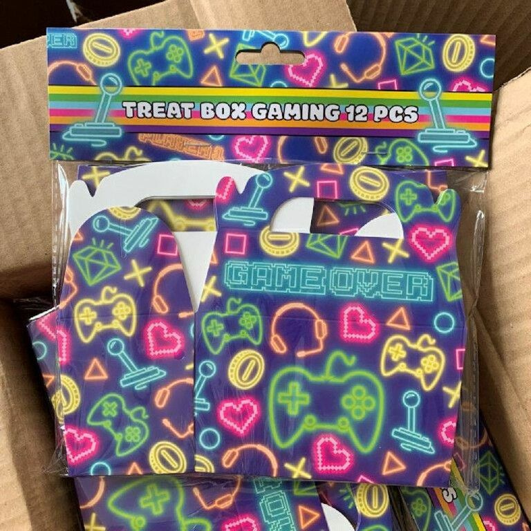 Leuke kleine Traktatie / Uitdeeldoosjes model: Gamer. Afmetingen: 12 x 12.5 x 6 Cm.