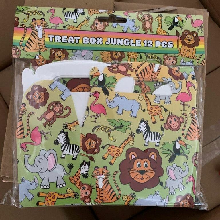 Leuke kleine Traktatie / Uitdeeldoosjes model: Jungle dieren. Afmetingen: 12 x 12.5 x 6 Cm.