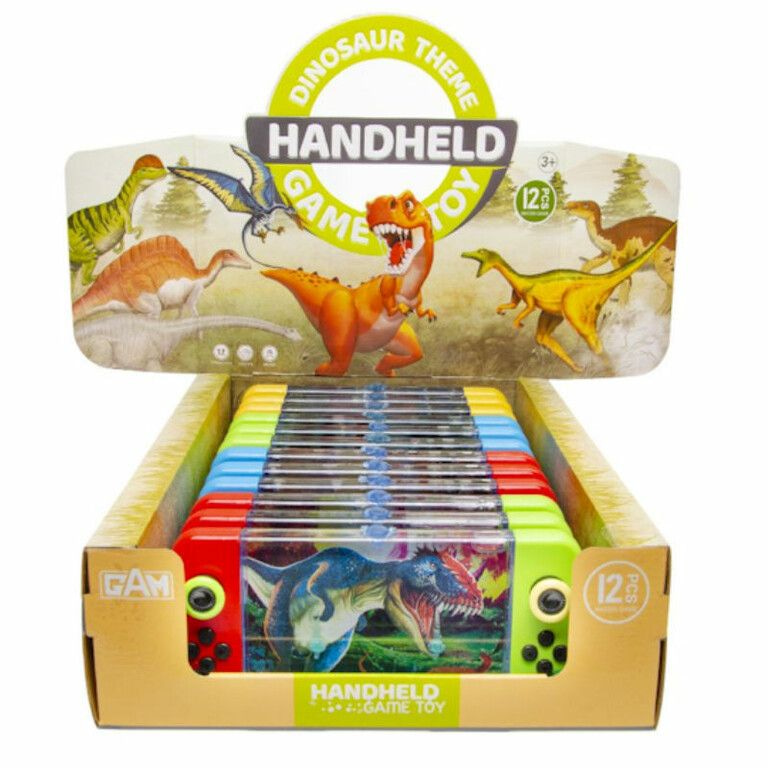 A fun, large water feature shaped like a handheld console. Dinosaur-themed water feature. Dimensions: 17 x 8 x 2 cm.