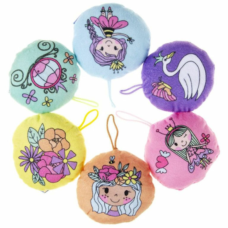 Ronde Pluche Prinsessen, worden met Mix soorten Prinses printen geleverd. Afmetingen: 10 x 10 x 3 Cm.