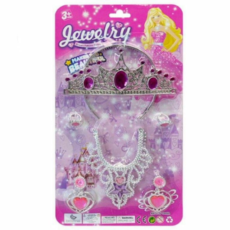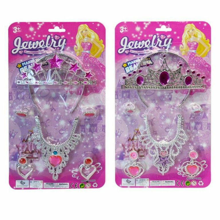 Leuke Princessen Beauty Set op kaart, bestaande uit: Tiara, Oorbellen, Halsketting en Ringen.