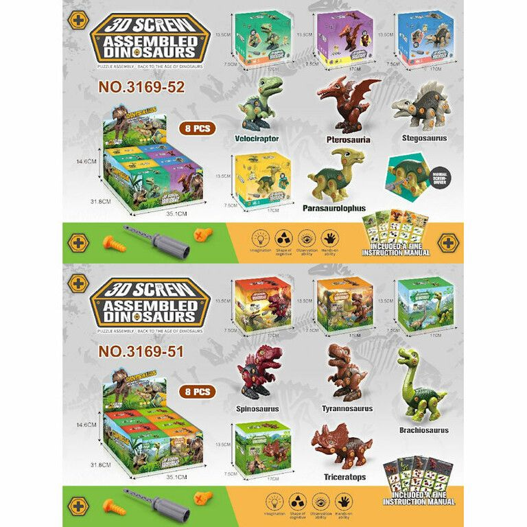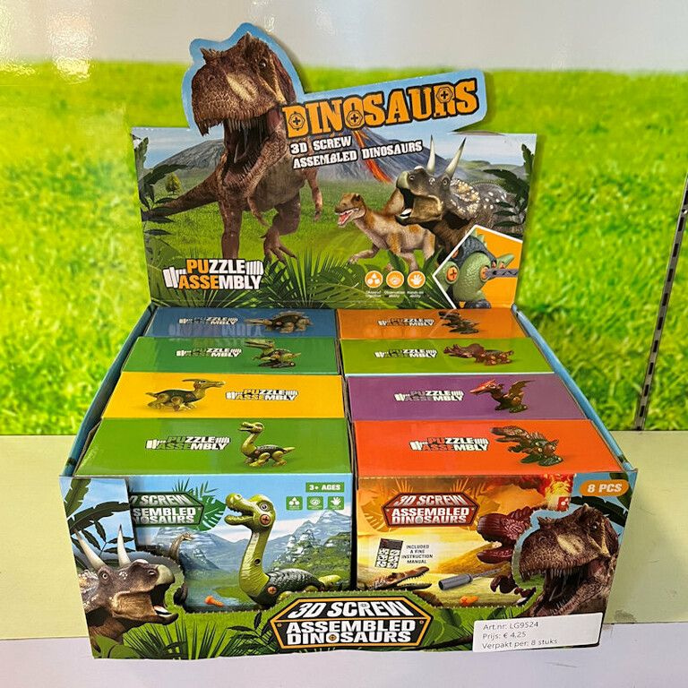 BOUW JE EIGEN 3D DINOSAURUS IN GIFTBOX - IN MIX SOORTEN IN GROTE DISPLAY (8st.)