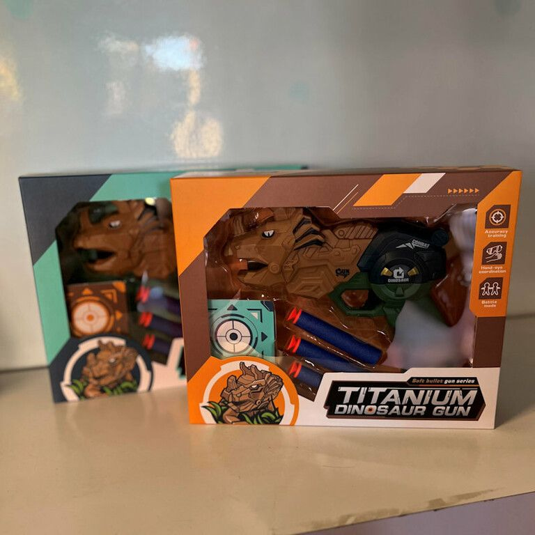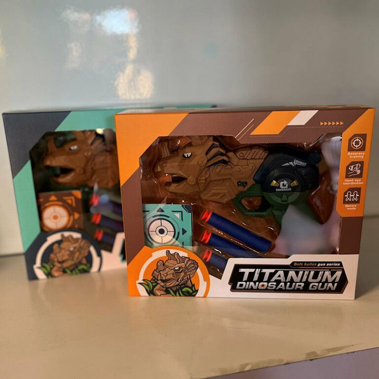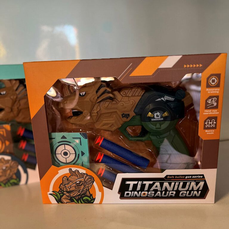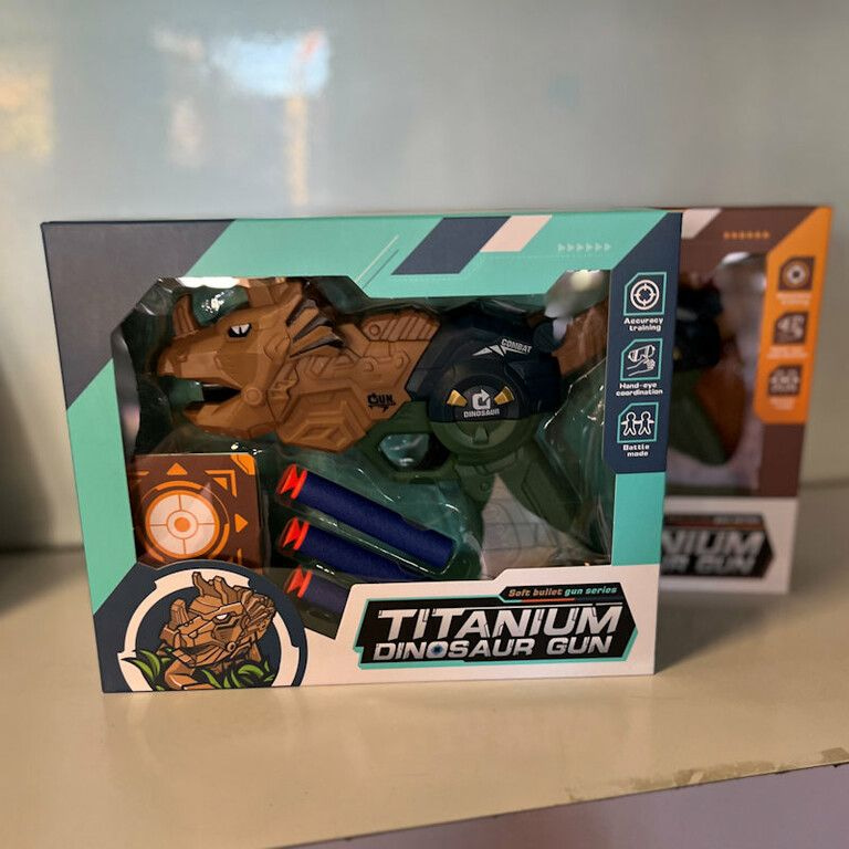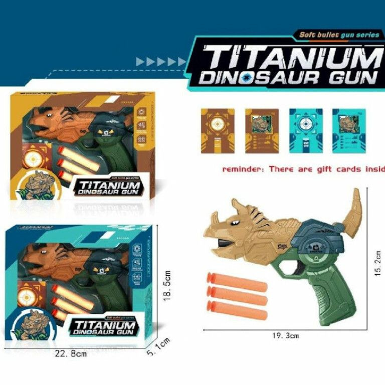 DINOSAUR GUN - DINOSAURUS PISTOOL MET PIJLEN EN TARGET - IN GIFTBOX (2st.)