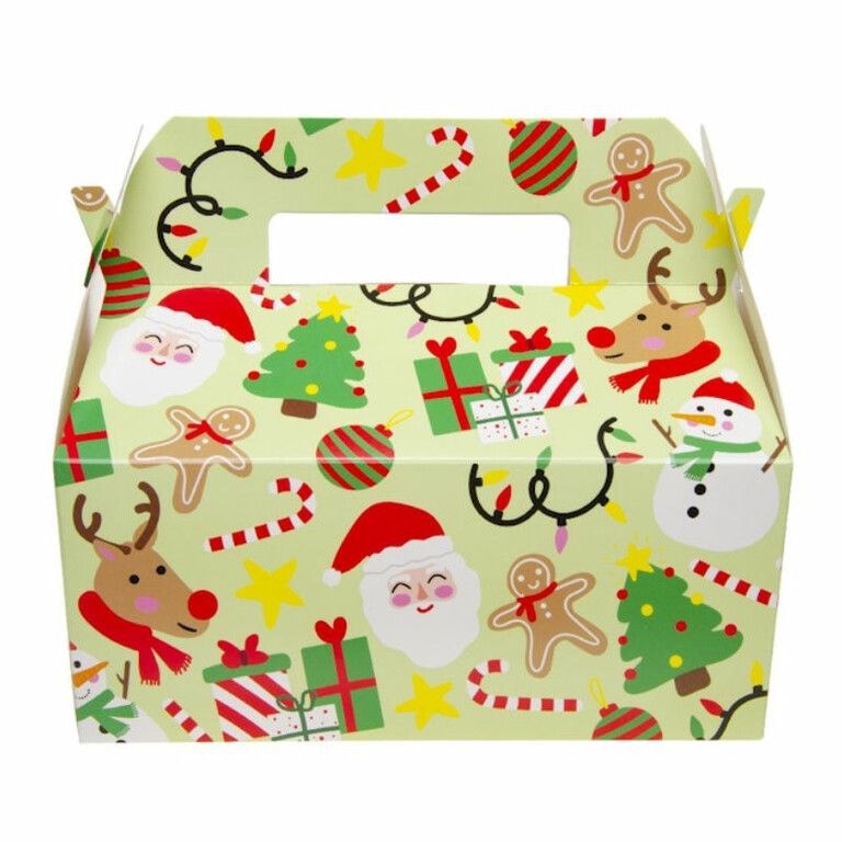 Grote Menuboxen, model: Kerstmis. Foodsafe. Afmetingen: 22.5 x 12 x 9.5 Cm