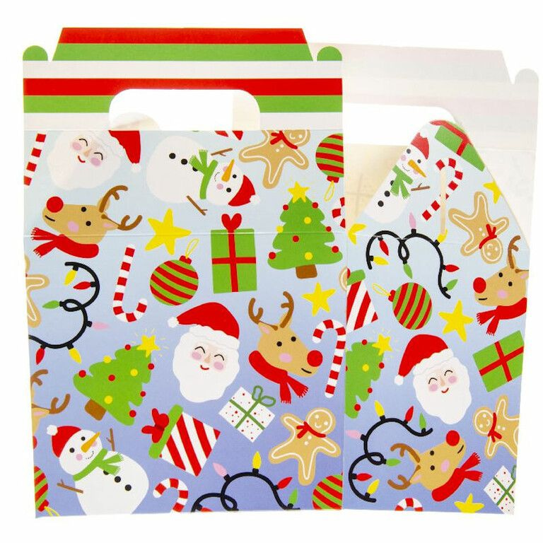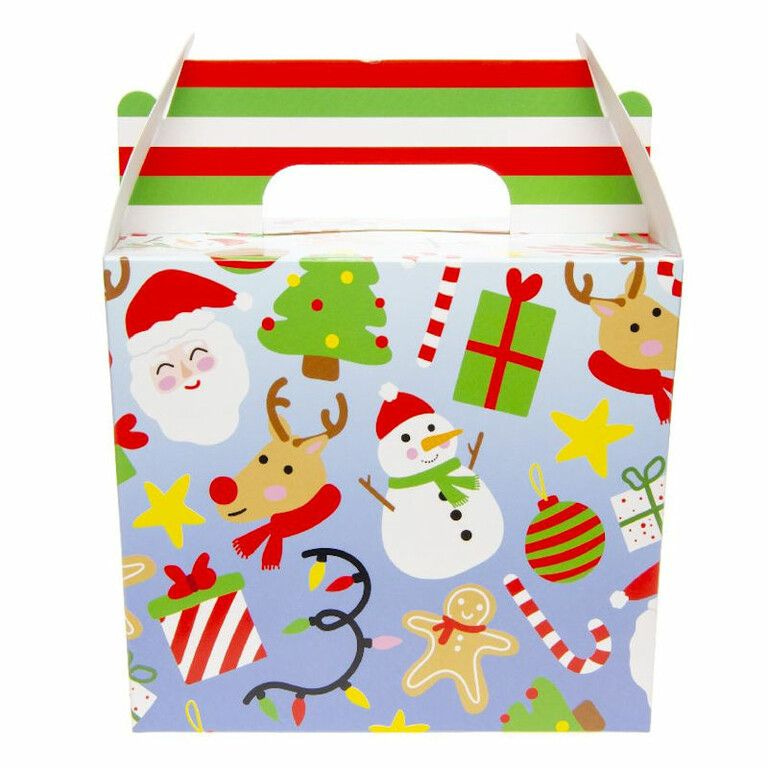 Leuke Menubox / Traktatie / Uitdeeldoosjes model: Kerstmis. Afmetingen: 14 x 10 x 17 Cm.