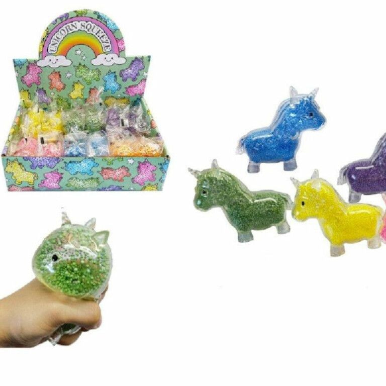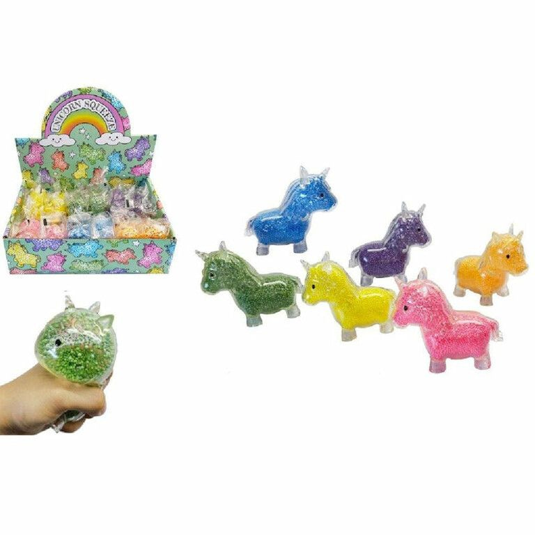 Super gave Squeeze Unicorns / Eenhoorns. Waar je heerlijk in kan knijpen. Afmetingen: 10 x 4 x 8 Cm. Wordt in Mix kleuren geleverd in een Display.