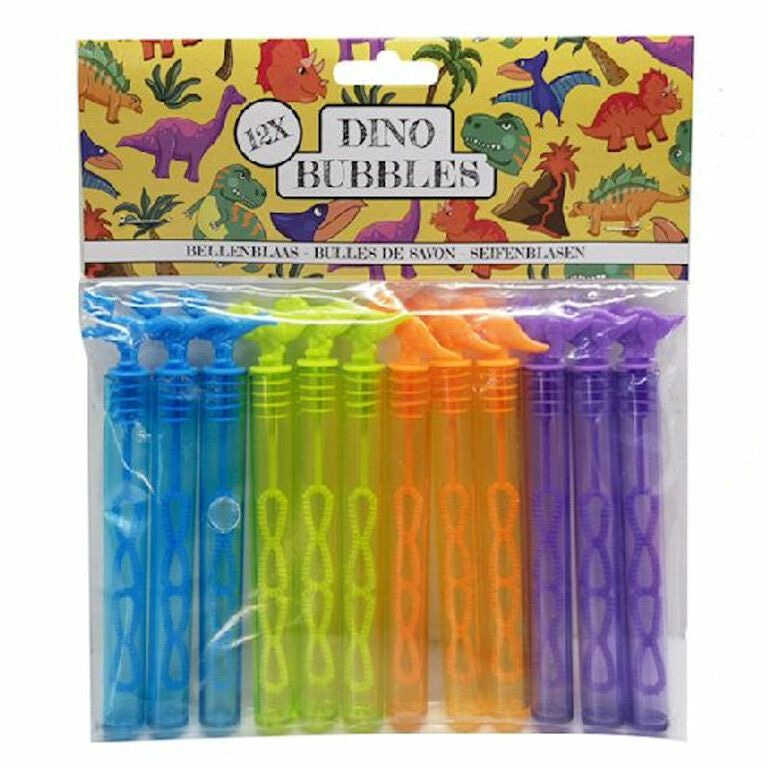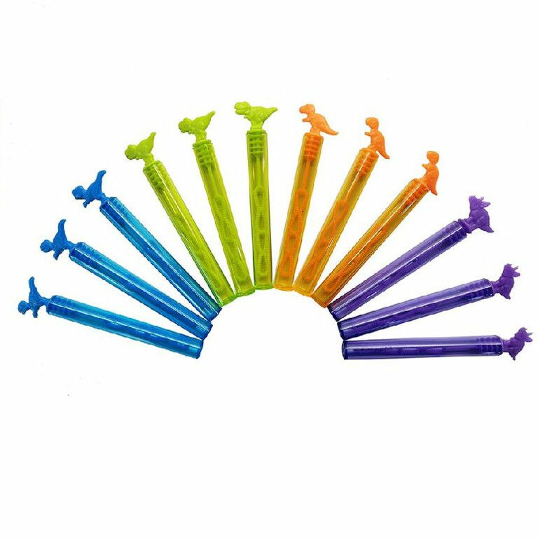 Fun, colorful mini bubble wands, dinosaur model. Comes in a mix of colors.