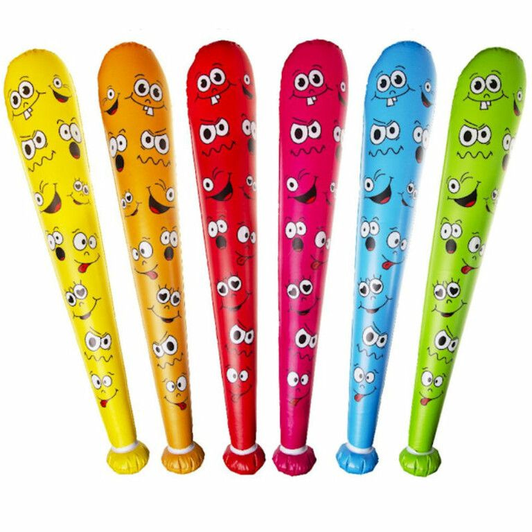 Grote opblaasbare Smiley Knuppel. Afmetingen: 14 x 14 x 85 Cm. Wordt geleverd in MIX kleuren.