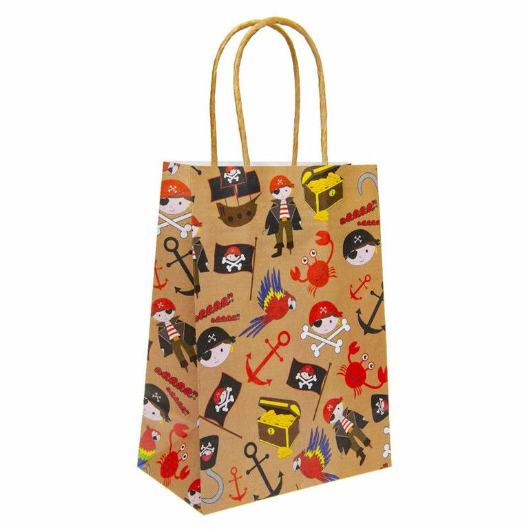 Papieren Gift Tas / Traktatie Tasjes. Model: Piraat. Afmetingen Tas (Zonder Hengsels) 16 x 9 x 22 Cm.