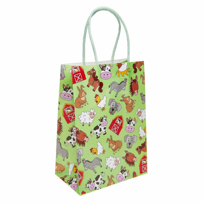 Papieren Gift Tas / Traktatie Tasjes. Model: Boerderij Dieren. Afmetingen Tas (Zonder Hengsels) 16 x 9 x 22 Cm.