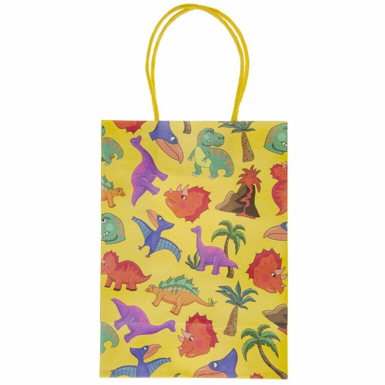 Papieren Gift Tas / Traktatie Tasjes. Model: Dinosaurus. Afmetingen Tas (Zonder Hengsels) 16 x 9 x 22 Cm.